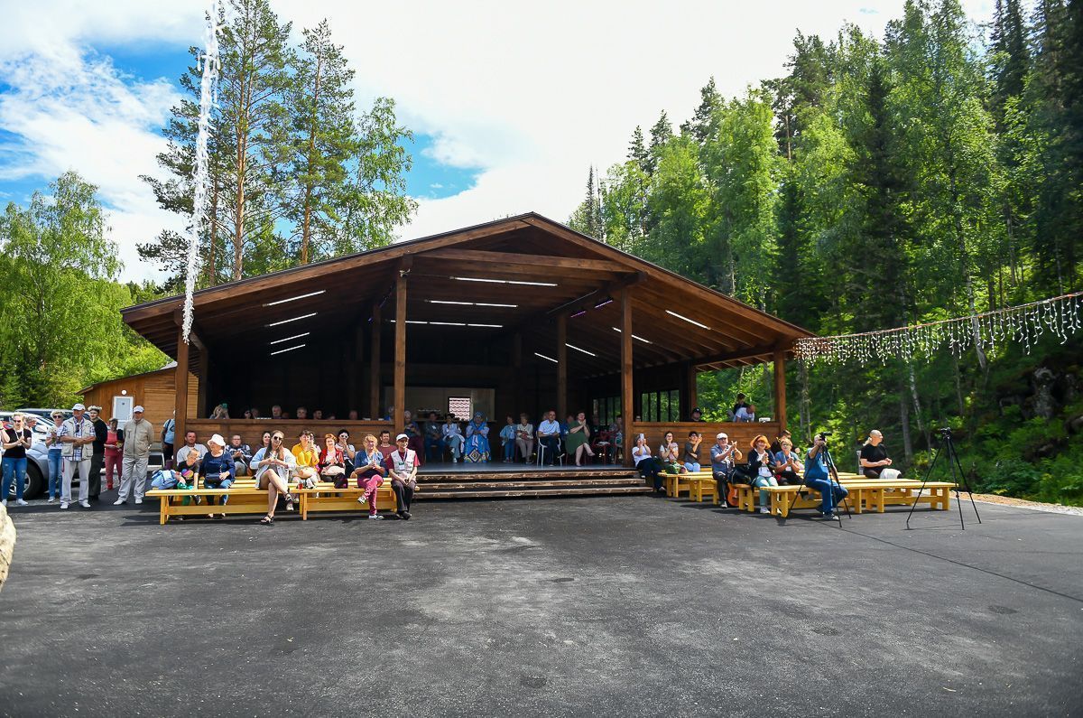 Протяженность туркомплекса - 2000 метров. Живописный лес, горы, река, озера, ручьи, арт-объекты. Благодаря обширной территории, гостям гарантированы комфорт, тишина и уединение.