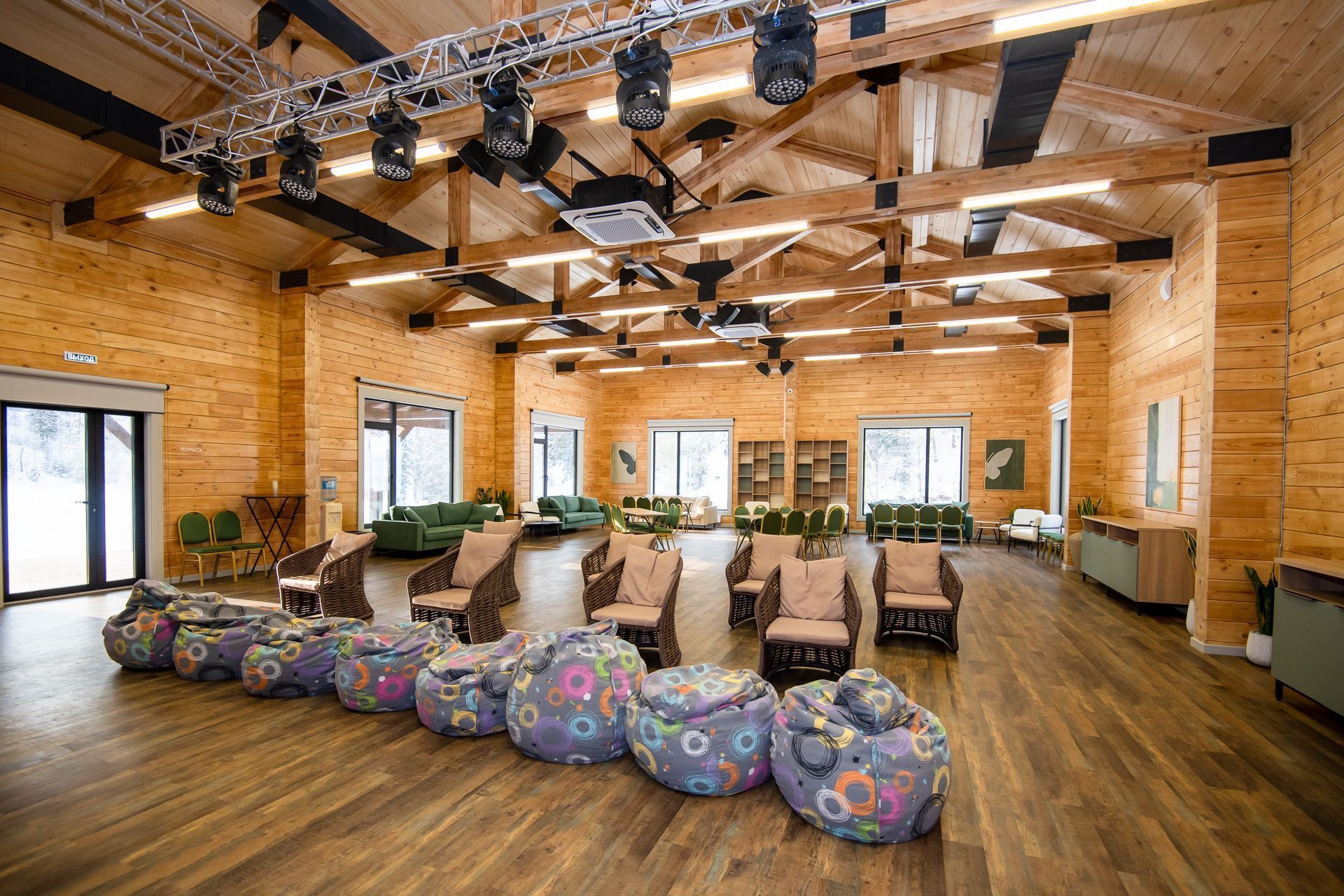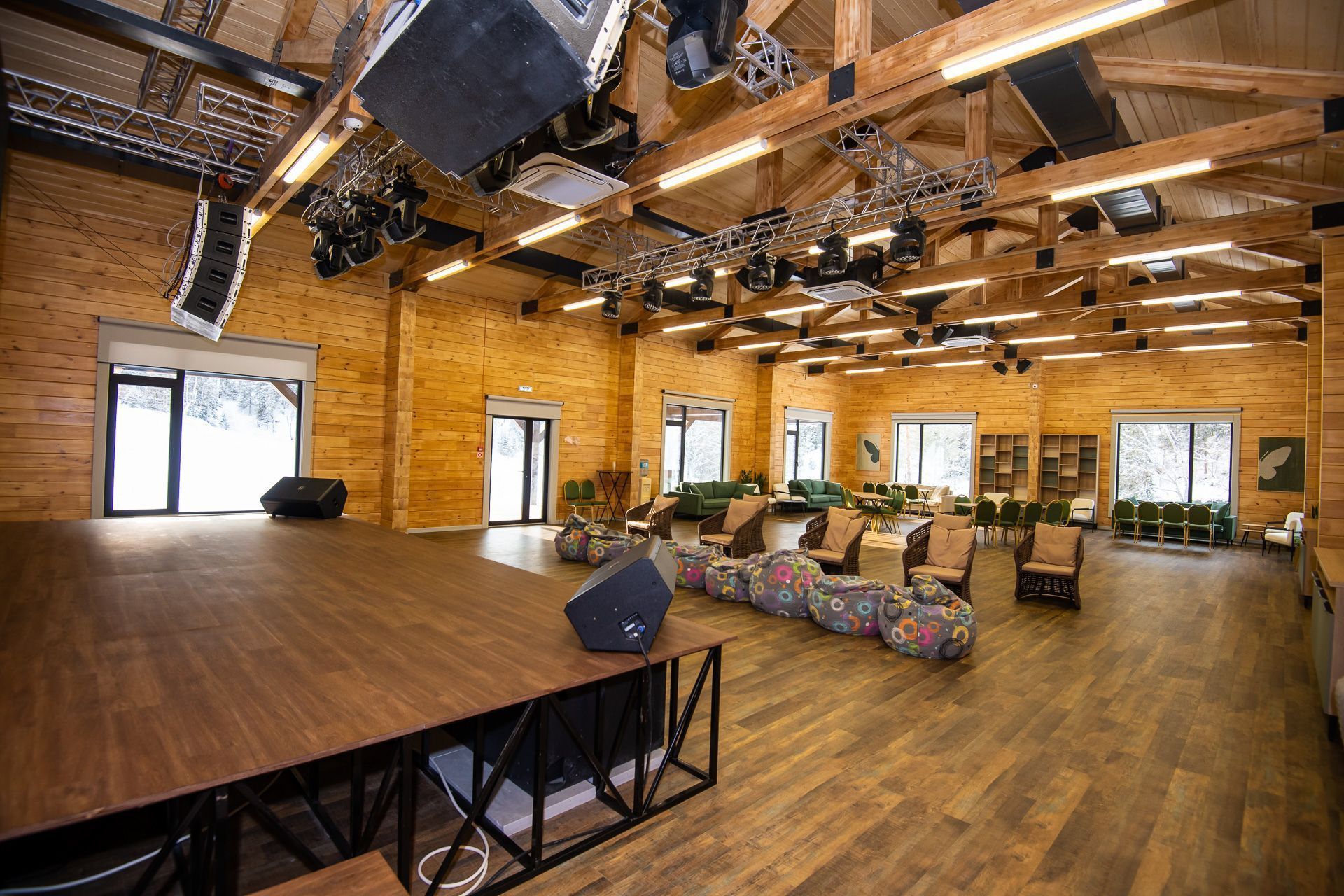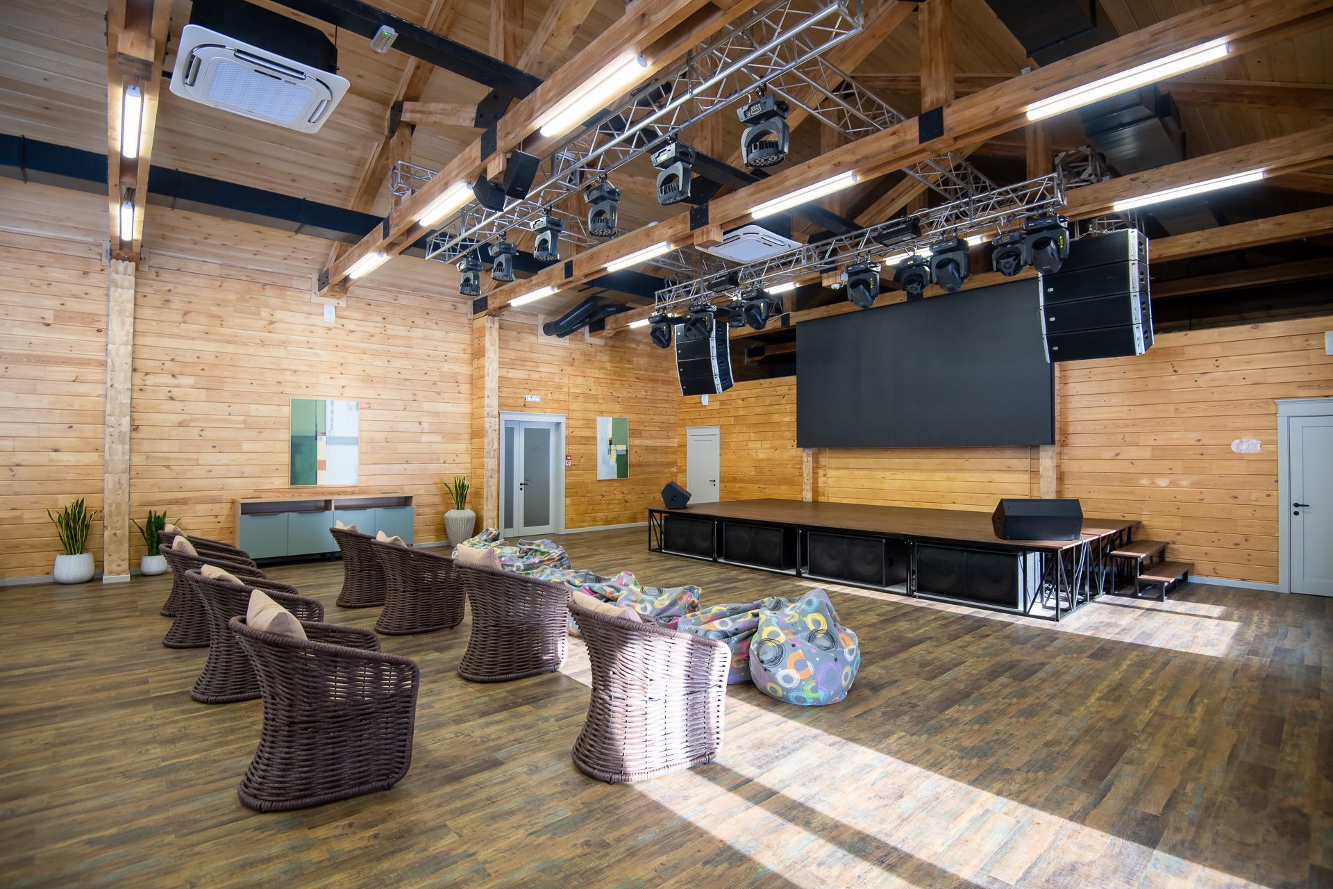 На "Лесной сказке" имеется несколько многофункциональных залов для проведения всевозможных мероприятий: конференций, круглых столов, тренингов, практик, концертов и прочего. Все залы оснащены светодиодными экранами и мультимедийным оборудованием.