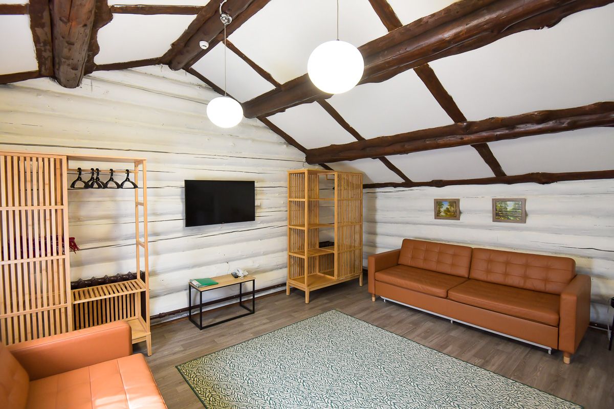 Однокомнатный уютный дом для отдыха небольшой компанией. Оснащение дома: два дивана (раскладываются), кухонная зона, обеденный стол на 6-8 персон, электрическая плита, посуда, чайник, холодильник, телевизор. Имеется санузел. В стоимость включен завтрак в ресторане.